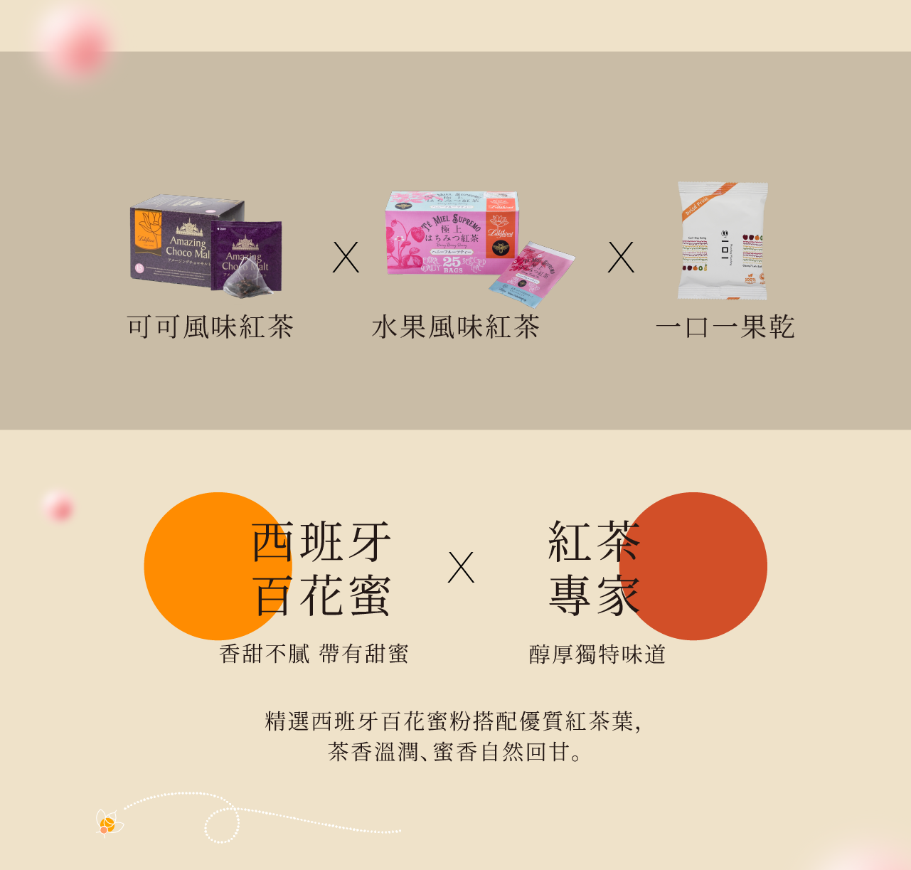 可可風味紅茶+蜂蜜風味水果紅茶+一口一果乾10入