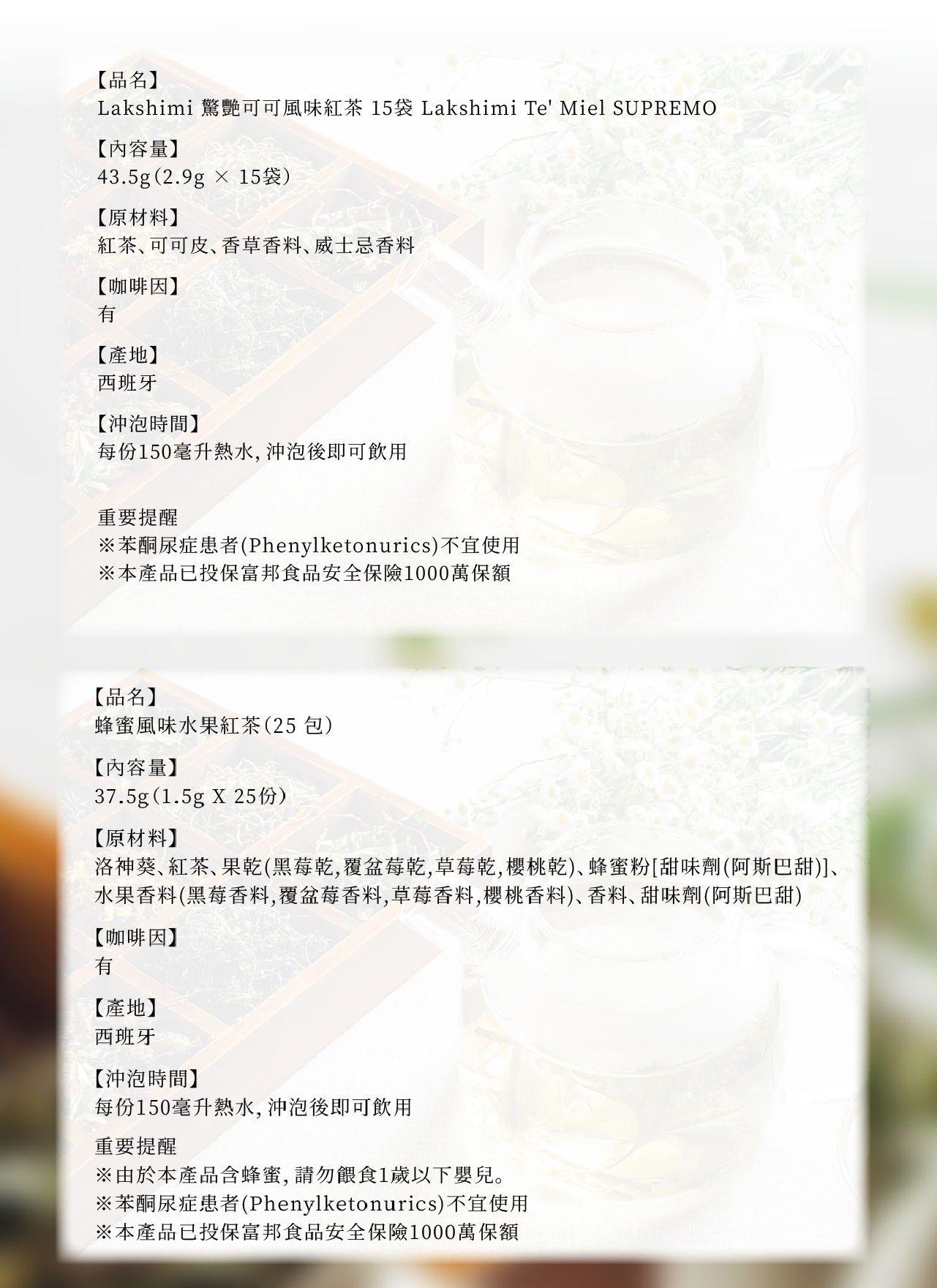 【短效期促銷x包裝改版組合】 Lakshimi 驚艷可可風味紅茶 +蜂蜜風味水果紅茶 + 一口一綜合果乾