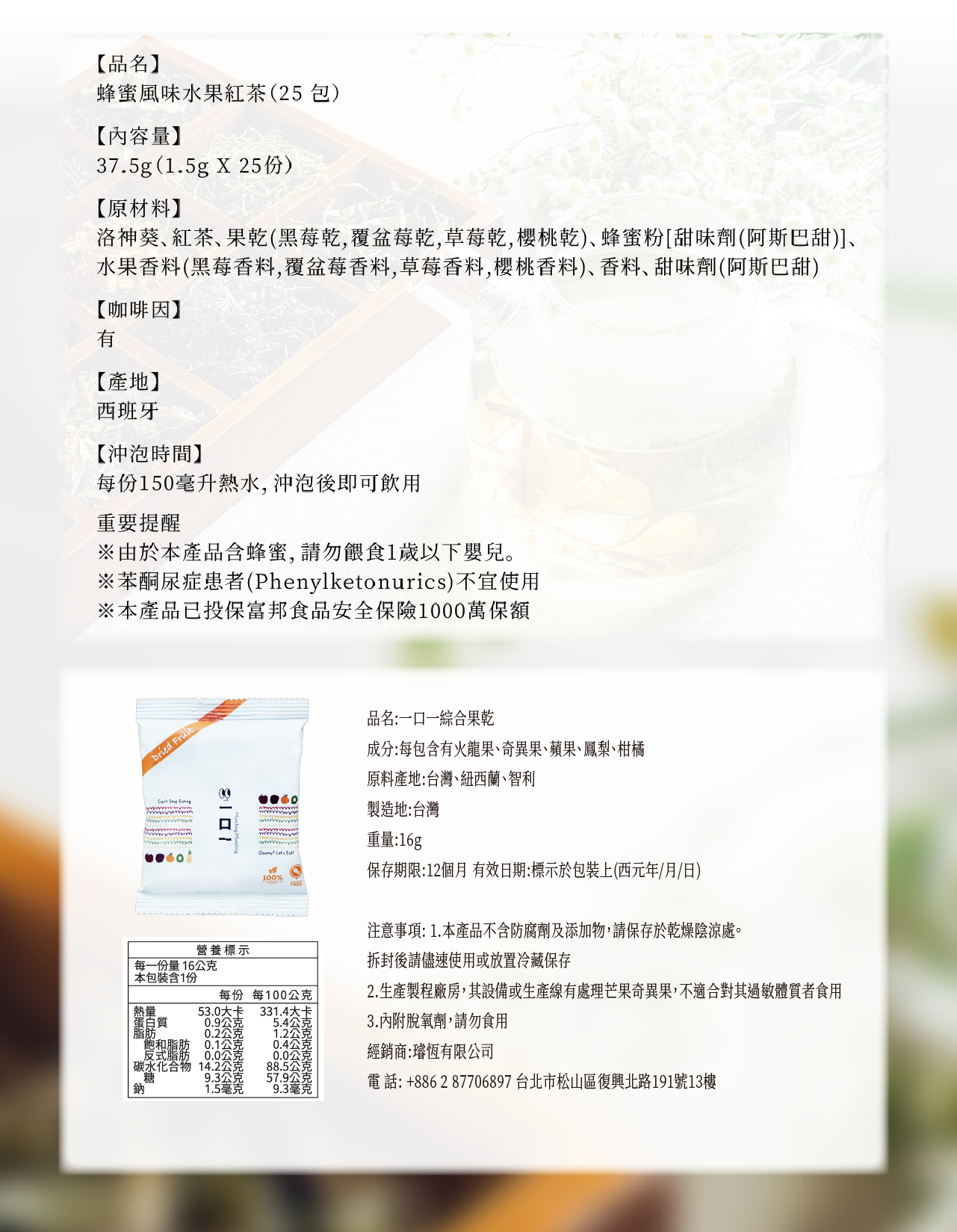蜂蜜風味水果紅茶+一口一綜合果乾10入